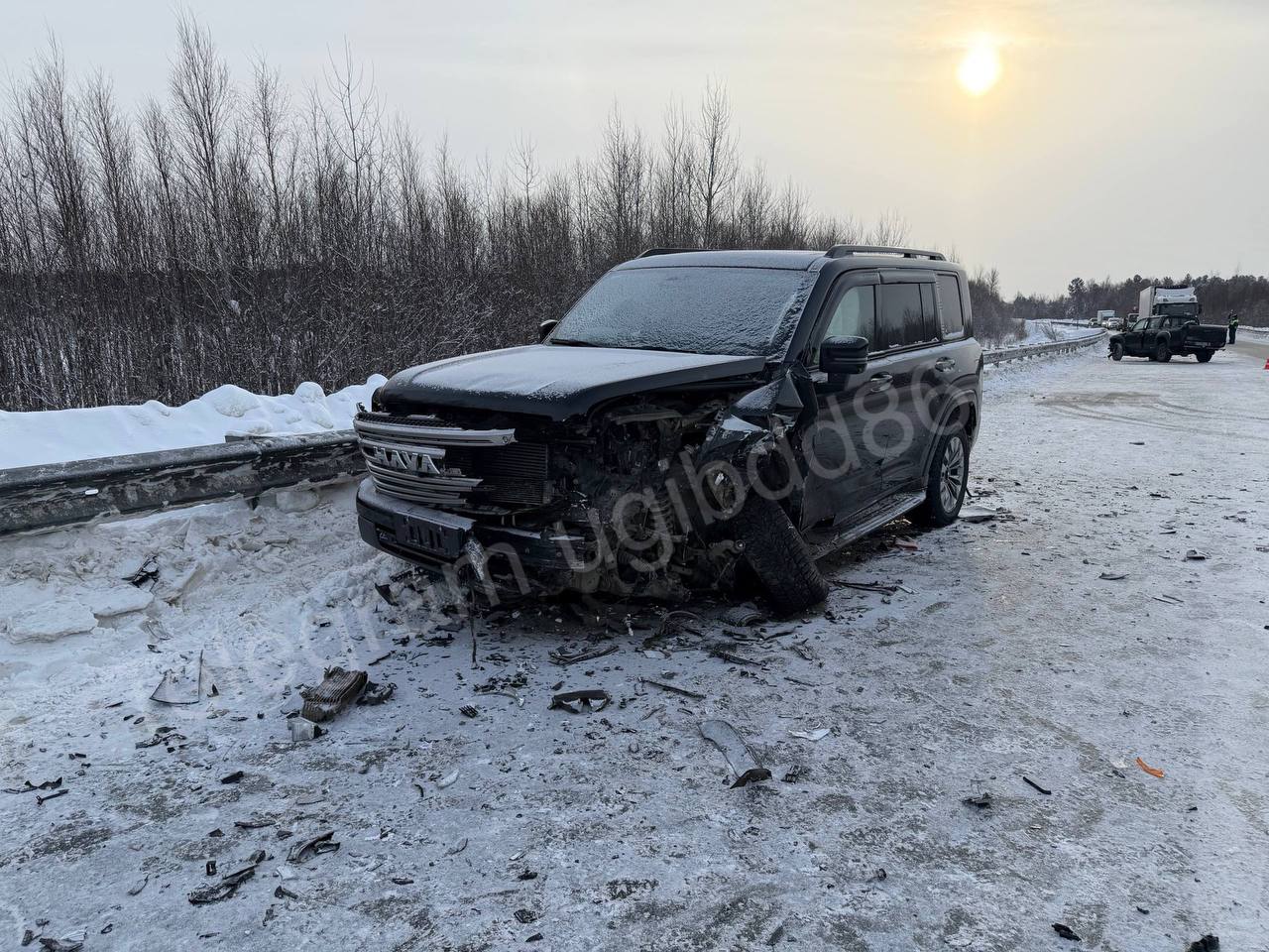 Накануне утром в Сургуте случилось массовое ДТП. 26-летний водитель Mazda не справился с управлением, выехал на встречную полосу и столкнулся с Haval и MAN.