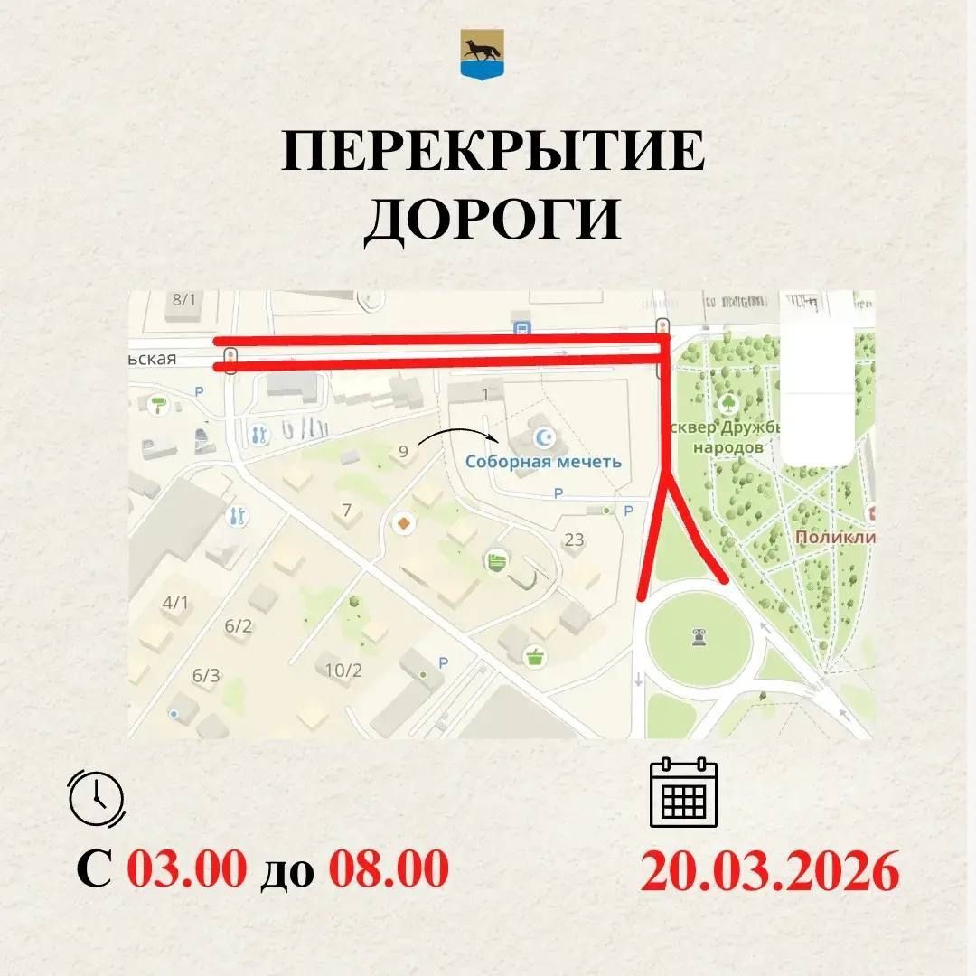 Утром в пятницу, 20 марта, в Сургуте изменятся маршруты движения – для празднования Ураза-байрама с 03:00 до 08:00 будет полностью перекрыт проезд у Соборной мечети.