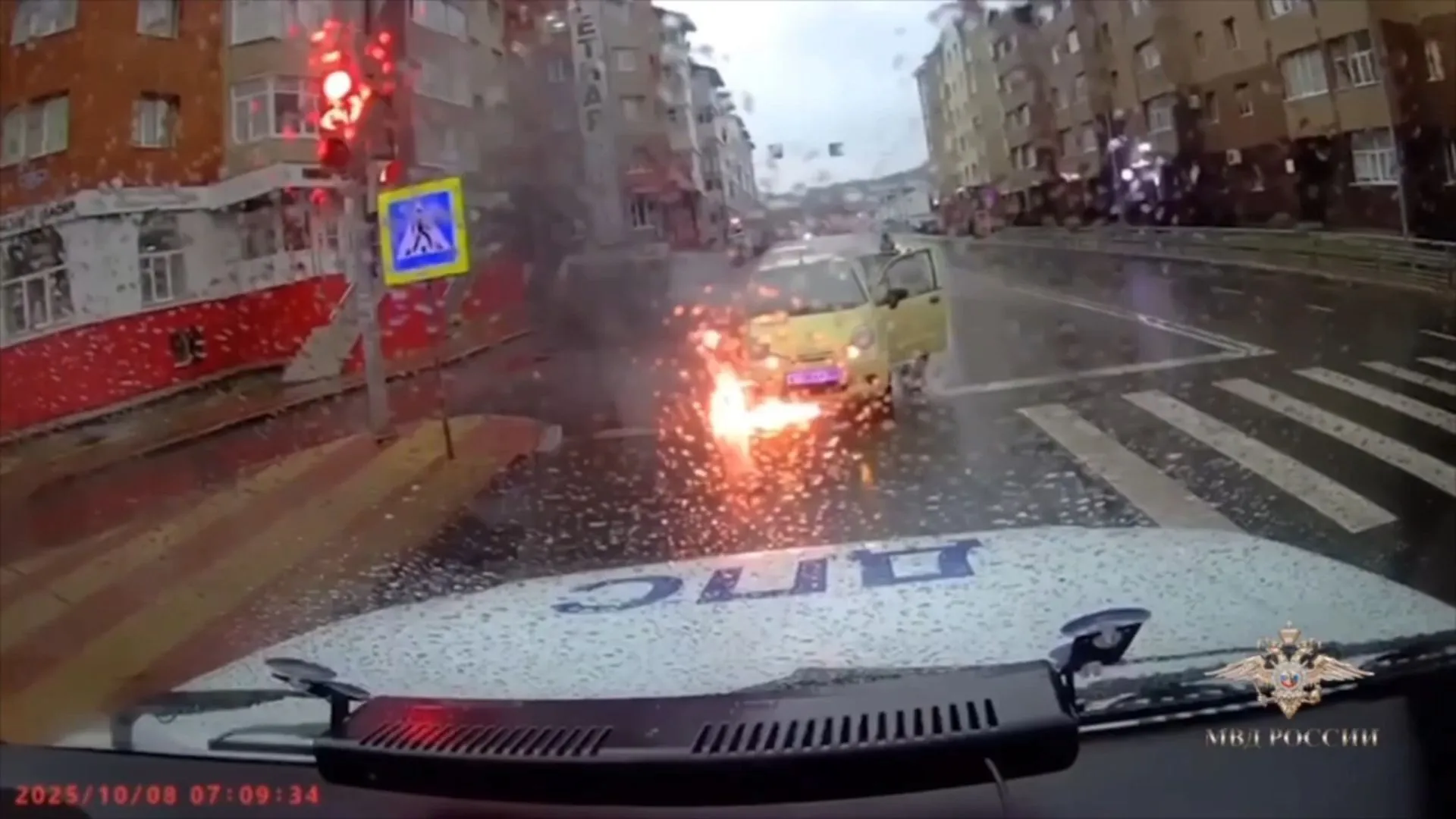 В Югре автоинспекторы помогли женщине, у которой загорелся автомобиль